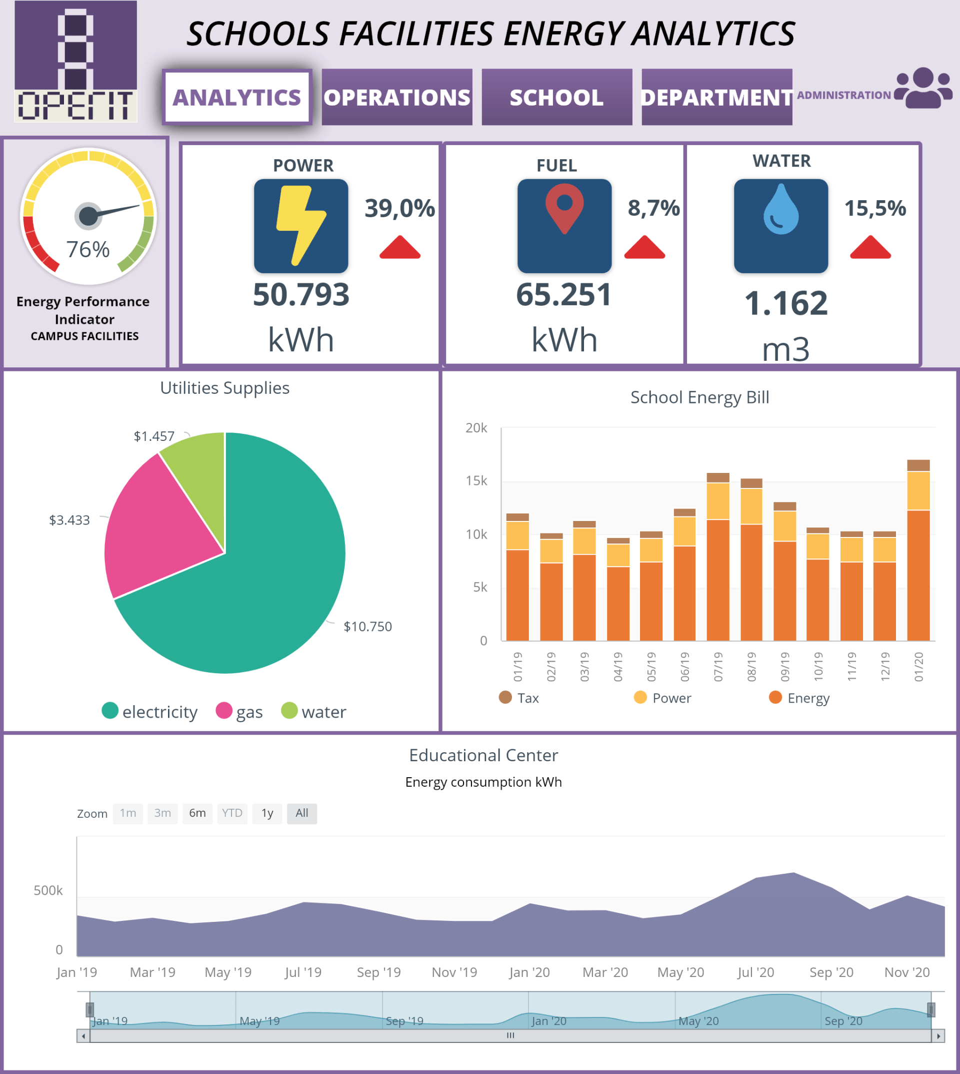OPERIT offers operational energy management for educational centers.